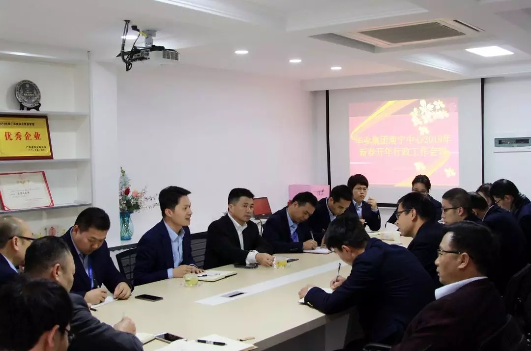 2019年2月11日,新年開工第一天,華業(yè)集團(tuán)分別于防城港運(yùn)營中心、南寧運(yùn)營中心隆重召開了2019年新春開年行政工作會議,龍其生董事長、龐樹玉副總裁出席了南寧運(yùn)營中心會議,廖人興副總裁、熊昭斐副總裁出席了防城港運(yùn)營中心會議。兩地全體行政工作人員分別參加了會議。