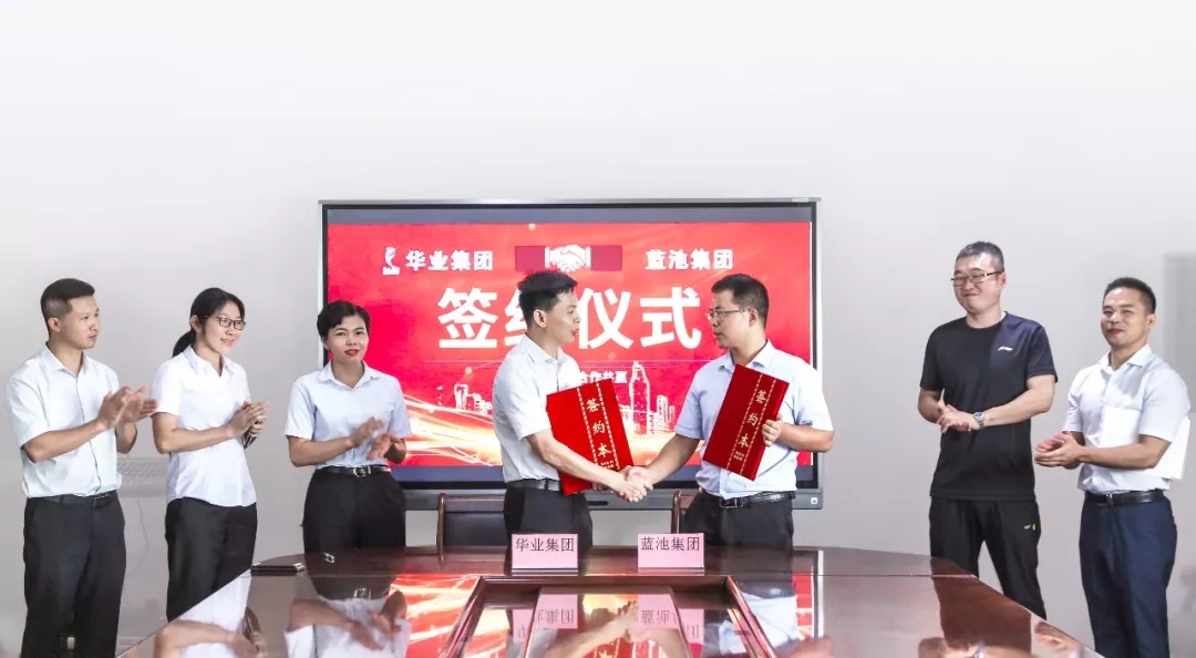 華業(yè)集團(tuán)副總裁熊昭斐,藍(lán)池集團(tuán)董事長(zhǎng)助理王艷剛分別代表雙方簽署了合作協(xié)議,華業(yè)集團(tuán)財(cái)務(wù)總監(jiān)李情、工會(huì)主席鐘麗霞、藍(lán)池集團(tuán)項(xiàng)目部總監(jiān)左江濤等領(lǐng)導(dǎo)出席見(jiàn)證了簽約儀式。