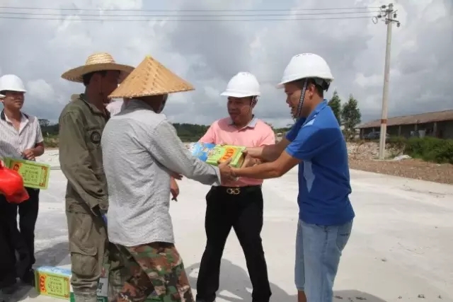 龍其偉總裁親切慰問(wèn)防城港市防城區(qū)城南新區(qū)A-8道路工程項(xiàng)目部員工。