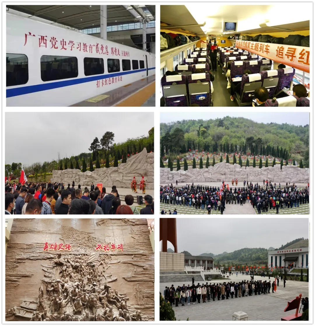 19日上午,全體黨員在南寧東站參加了活動(dòng)啟動(dòng)儀式,隨后搭乘D9688次廣西黨史學(xué)習(xí)教育“感恩黨 跟黨走”主題列車(chē)前往桂林湘江戰(zhàn)役紀(jì)念園、酒海井紀(jì)念園,覺(jué)山鋪、新圩及光華鋪?zhàn)钃魬?zhàn)舊址等地開(kāi)展黨史學(xué)習(xí)教育活動(dòng),追尋先輩足跡、重溫紅色記憶、接受精神洗禮。在活動(dòng)現(xiàn)場(chǎng),黨員們通過(guò)學(xué)習(xí)中央紅軍長(zhǎng)征的悲壯史詩(shī)——湘江戰(zhàn)役的黨史教育,仿佛看到了那一幕幕前赴后繼、生死存亡的歷史畫(huà)面,對(duì)這段悲壯的歷史有了更加深刻的了解和認(rèn)識(shí),并從中汲取和傳承不忘初心、繼續(xù)前進(jìn)的智慧和力量,準(zhǔn)確領(lǐng)會(huì)黨史學(xué)習(xí)教育的重大意義。