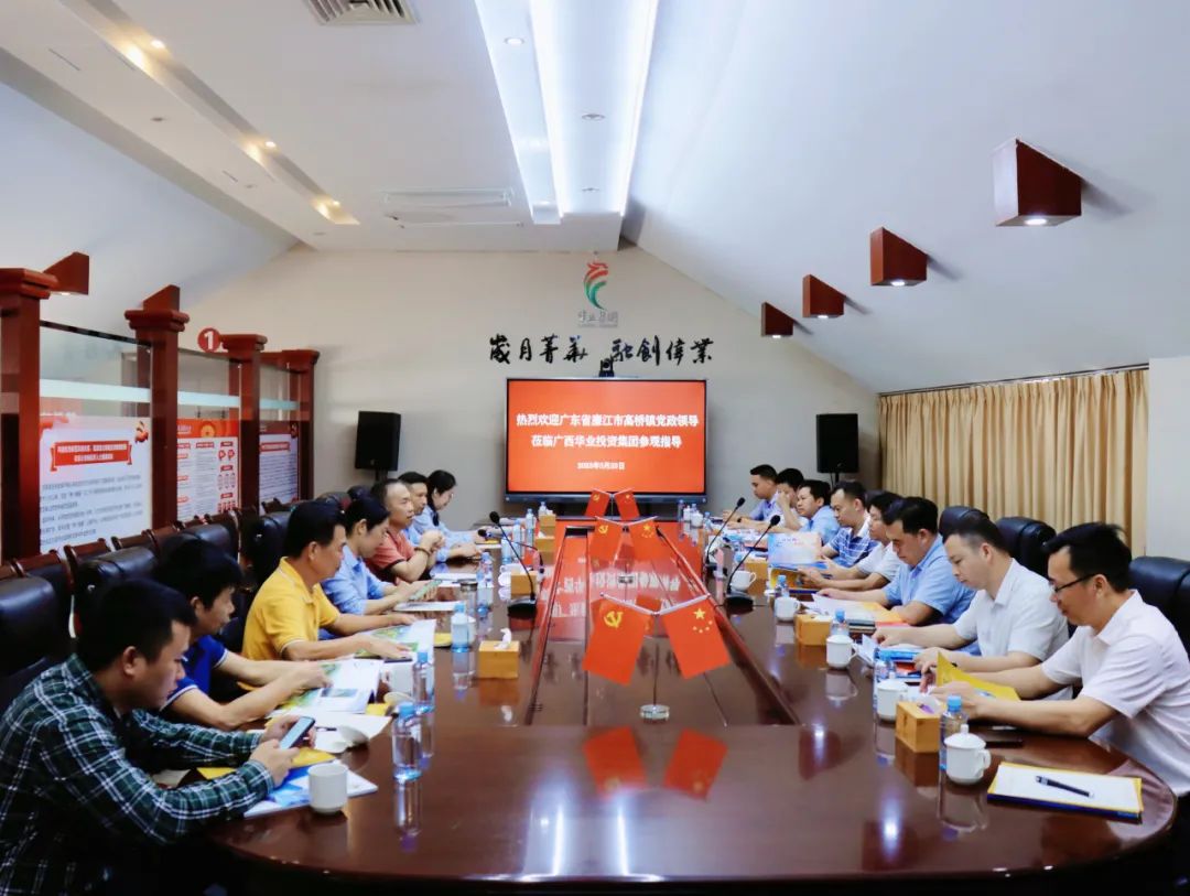 2023年3月23日,廣東省湛江市廉江市高橋鎮(zhèn)黨委書記劉付劍輝、鎮(zhèn)長葉福柱等領(lǐng)導(dǎo)一行十五人蒞臨廣西華業(yè)投資集團(tuán)有限公司考察調(diào)研,廣西華業(yè)投資集團(tuán)有限公司創(chuàng)始人、總裁龍其偉,工會(huì)主席鐘麗霞熱情地接待了家鄉(xiāng)領(lǐng)導(dǎo),對(duì)家鄉(xiāng)領(lǐng)導(dǎo)們的到來表示熱烈歡迎!